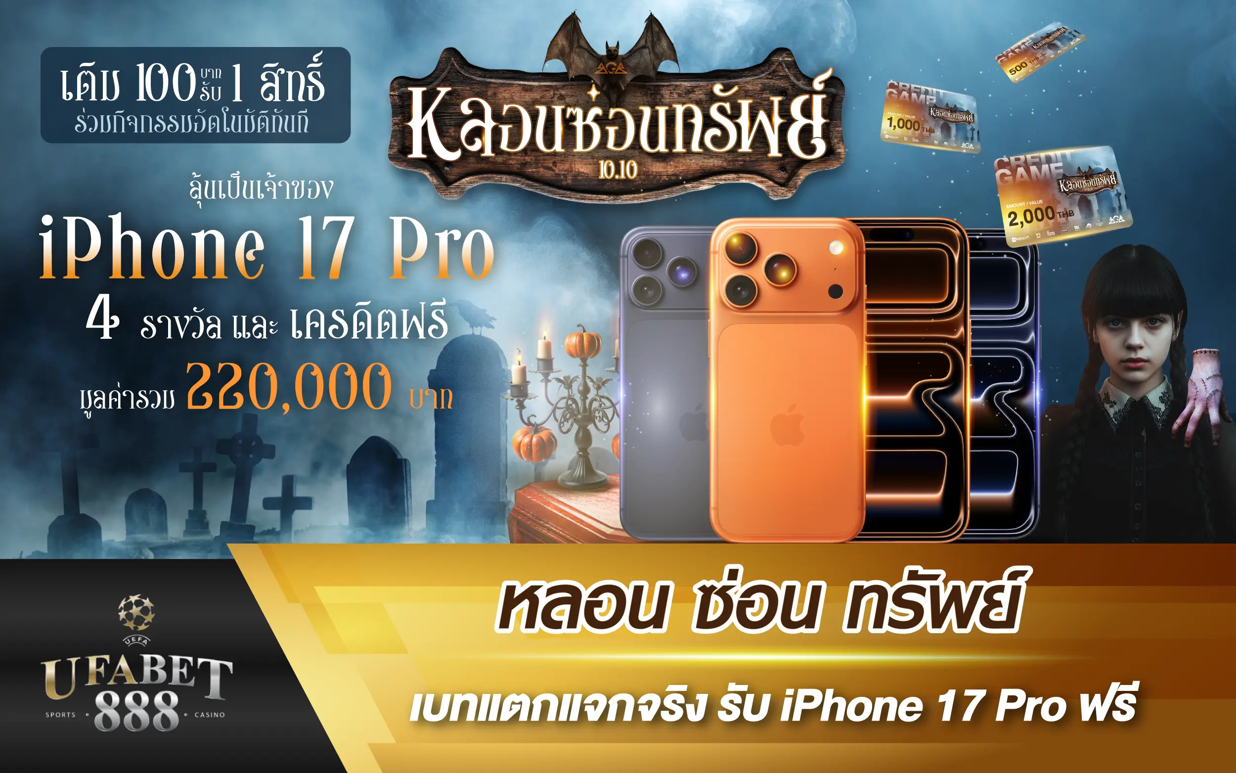 กลับมาอีกครั้งกับความมันส์สุดใจ เปิดสมบัติลึกลับสะท้านวงการ กับยูฟ่าเบท พร้อมตามหานักล่ารางวัลตัวจริงเข้ามาร่วมสนุก พิชิตรางวัลใหญ่สุดกำลังมาแรงในกิจกรรม “หลอนซ่อนทรัพย์” และไม่ว่าใครก็ตามหาสิ่งนี้กันมากที่สุด จะเป็นอะไรไม่ได้เลยนอกจาก iPhone 17 Pro ของใหม่รุ่น Rare ไอเทม สาวกแอปเปิลตัวยงไม่ควรพลาด และถ้าไม่อยากปล่อยโอกาสทองนี้หลุดมือไป รีบเดินเข้ามาเปิดสิทธิ์เพื่อรอลุ้นโชคกันได้เลยตอนนี้